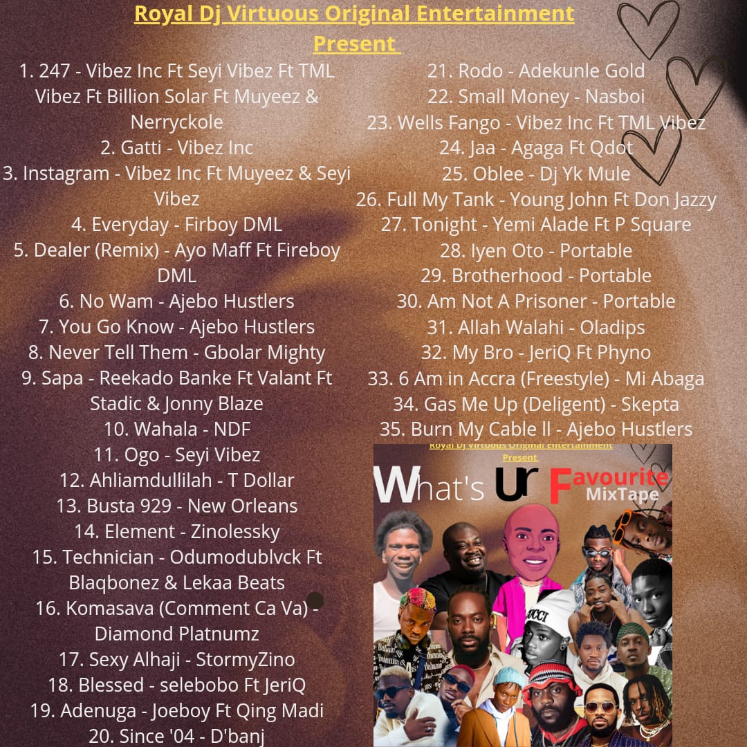 The mixtape “What’s Your Favorite (Amapiano Dance Trap) Mix” is an amazing record that should definitely find its way onto your Playlist. With its captivating melodies and heartfelt lyrics, it is bound to leave a lasting impression on listeners. Royal DJ Virtuous Original showcases his exceptional talent and creativity in this latest release, solidifying his position as one of the most promising DJ in the Music industry.